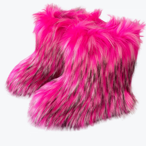 Botas de piel sintética esponjosas para mujer de fábrica, calzado de lujo cálido de felpa esponjosa para mujer, botas de piel peluda para niñas, botas de nieve de piel a la moda